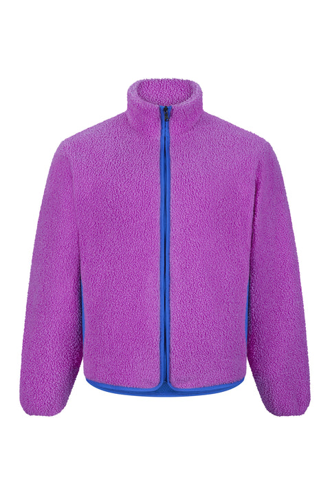 Plush sherpa fleece jacket with a soft exterior and breathable mesh lining. Features a front zip closure, functional side pockets, and a relaxed fit designed for layering.