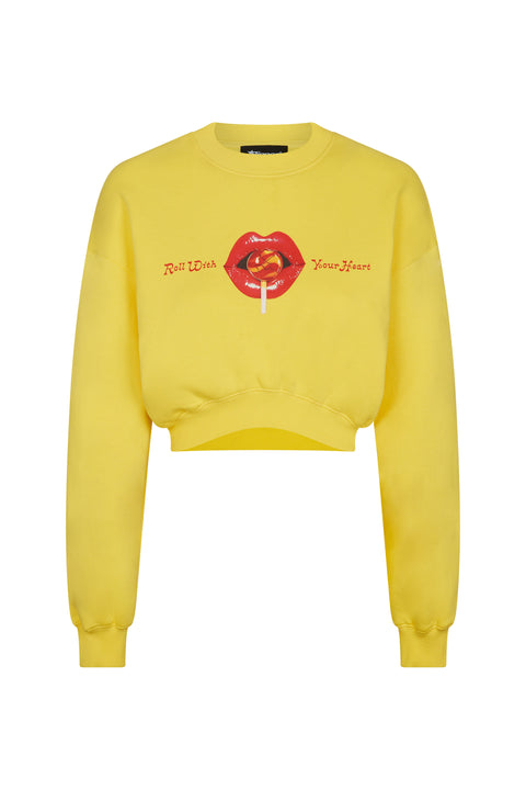 Premium brushed fleece crewneck with a roomy body and a high-low waist length.